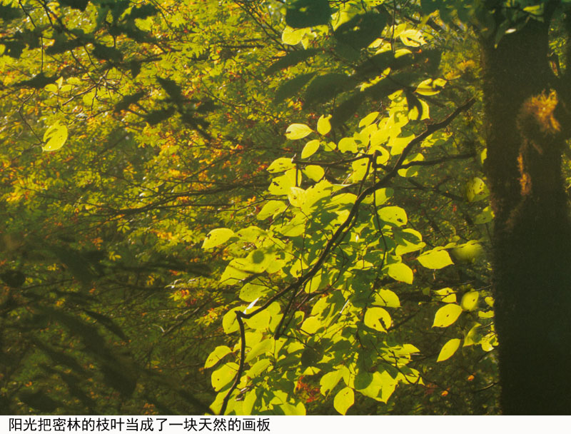 阳光把密林的枝叶当成了一块天然的画板