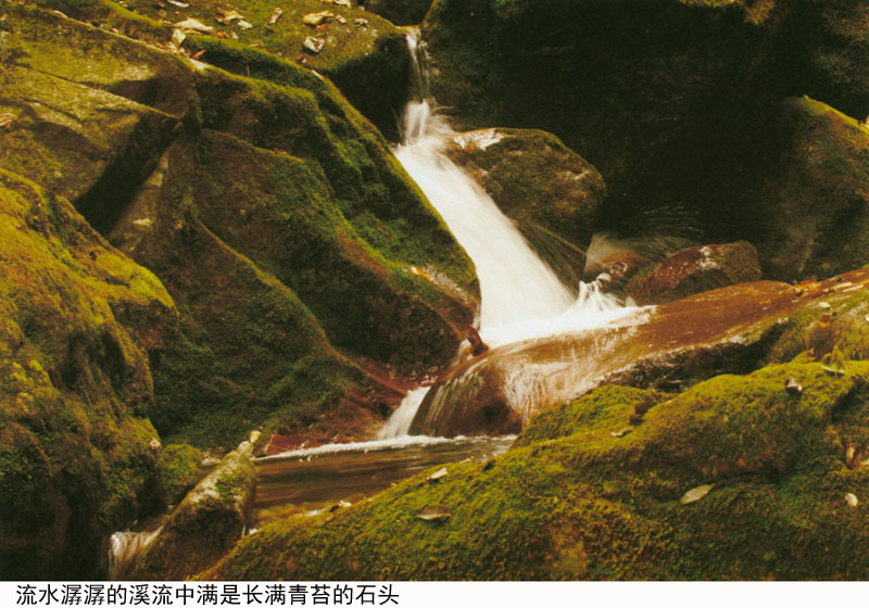 流水潺潺的溪流中满是长满青苔的石头