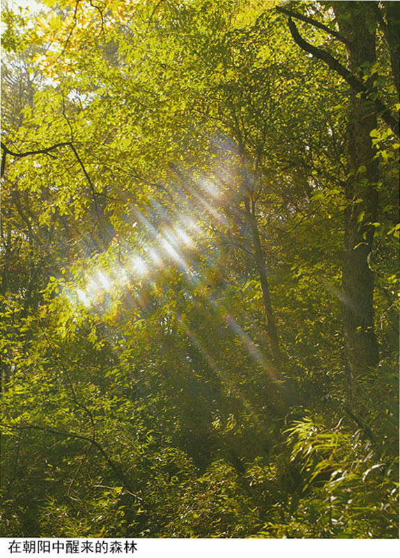 在朝阳中醒来的森林