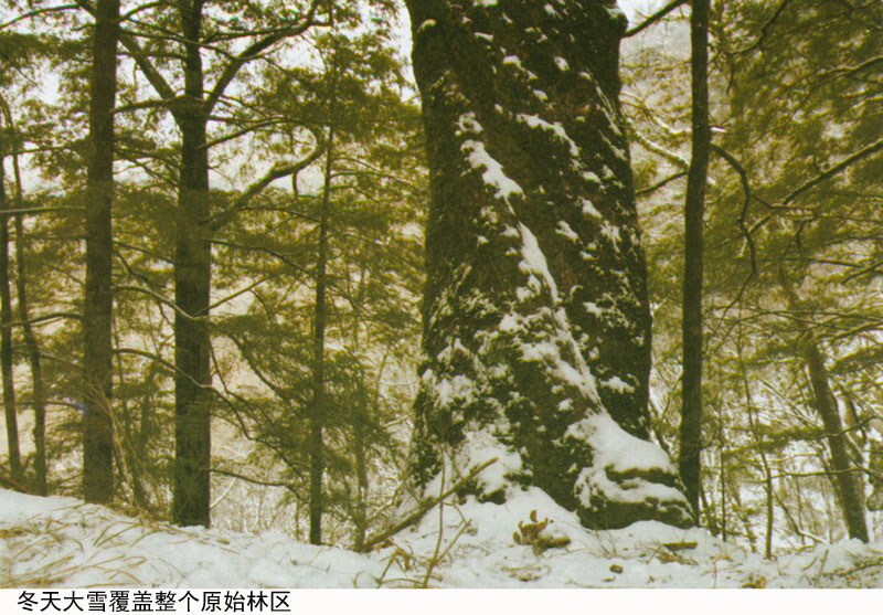 冬天大雪覆盖整个原始林区