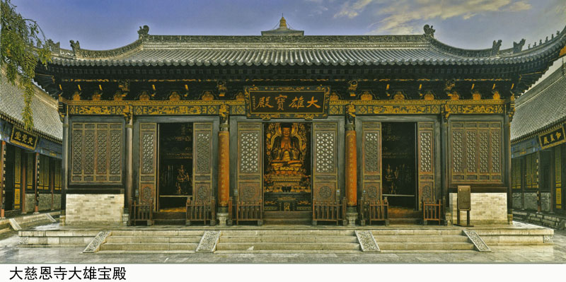 在佛教寺院中,大雄宝殿就是正殿,也有称为大殿的。大雄宝殿是佛教寺院的核心建筑,殿中通常供奉着释迦牟尼佛的佛像。“大雄”是佛的德号。“大”是包含万有的意思;“雄”是慑伏群魔的意思。因为释迦牟尼佛具足圆觉智慧,能雄镇大千世界,因此佛门弟子都尊称他为大雄。宝殿的宝,是指佛法僧三宝。佛宝指教主,法宝指教义,僧宝指教团。