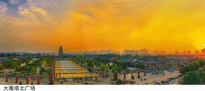 大雁塔北广场是围绕着大雁塔和大慈恩寺建成的富有佛教文化气息和陕西人文色彩的文化景区。广场整体设计以突出大雁塔大慈恩寺及唐文化为主题。整个广场以大雁塔为中心轴三等分,中央为主景水道,左右两侧分置“唐诗园林区”、“法相花坛区”、“禅修林树区”等景观。主景水道的音乐喷泉广场是亚洲最大的喷泉广场。“诗仙”李白、“诗圣”杜甫、“茶圣”陆羽、“诗佛”王维、“唐宋八大家”之首韩愈、书法家怀素、天文学家僧一行、“药王”孙思邈八个精英人物逼真的雕像也为广场增色不少。