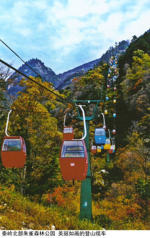 秦岭北部朱雀森林公园 美丽如画的登山缆车